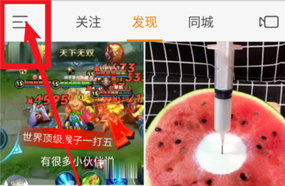 1、打开快手APP,点击左上角的三横图标。