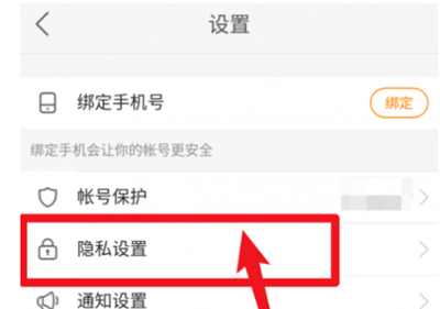 2、点击【设置】选项,打开【隐私设置】选项。