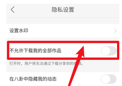 3、将【不允许下载我的全部作品】后面的开关开启即可。