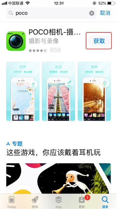 1、打开手机App Store,搜索POCO,点击“获bai取”