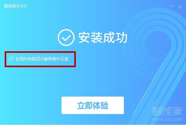 2、点击【一键安装】,安装成功后勾选【在我的电脑显示酷狗音乐云盘】即可。