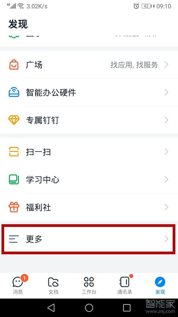 1、点击手机钉钉底部的【发现】按钮,选择【更多】。
