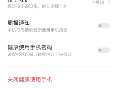 2、点击【关闭健康使用手机】,点击【确定】即可。