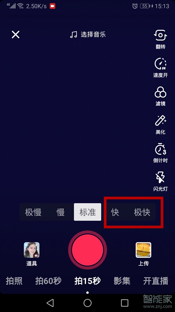 3、根据自己的加速需求,选择“快”或者“极快”,然后拍摄即可。