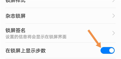 2、选择【锁屏和密码】,将【在锁屏上显示步数】后面的开关开启即可