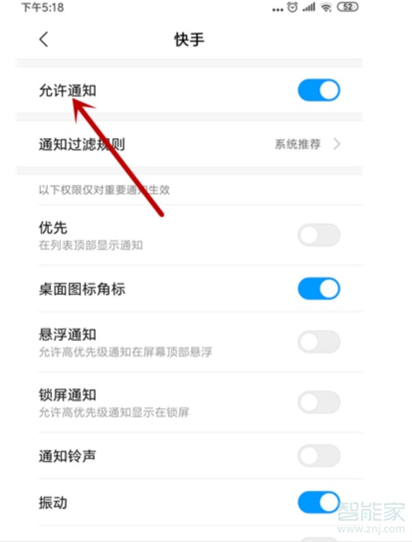 2、可能是手机没有开启快手消息通知。可打开手机通知设置,在快手通知管理页面,开启允许通知。