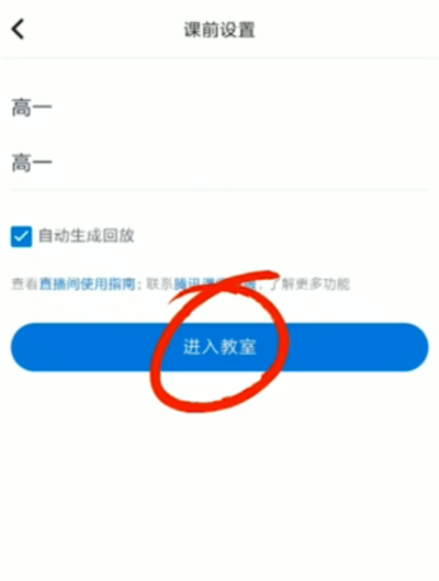 4.根据自身需求选择是否【自动生成回放】,选中【进入教室】