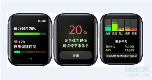 2.运动中OPPO Watch实时监测你的体力,过低时会主动提醒你!
