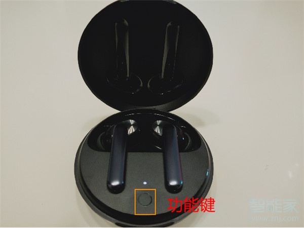4、如果想更换其他的设备进行连接,保持耳机在充电盒中打开充电盒,长按功能键2秒至指示灯白色闪烁,耳机就会进入配对状态。