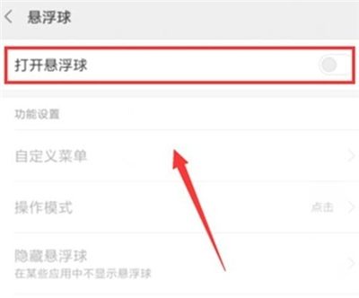 4、我们可以看到悬浮球是关闭状态的,我们点击后面的开关按钮使其变成蓝色即为开启。