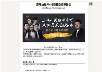 2.找到付费收听,填写喜马拉雅招募计划。