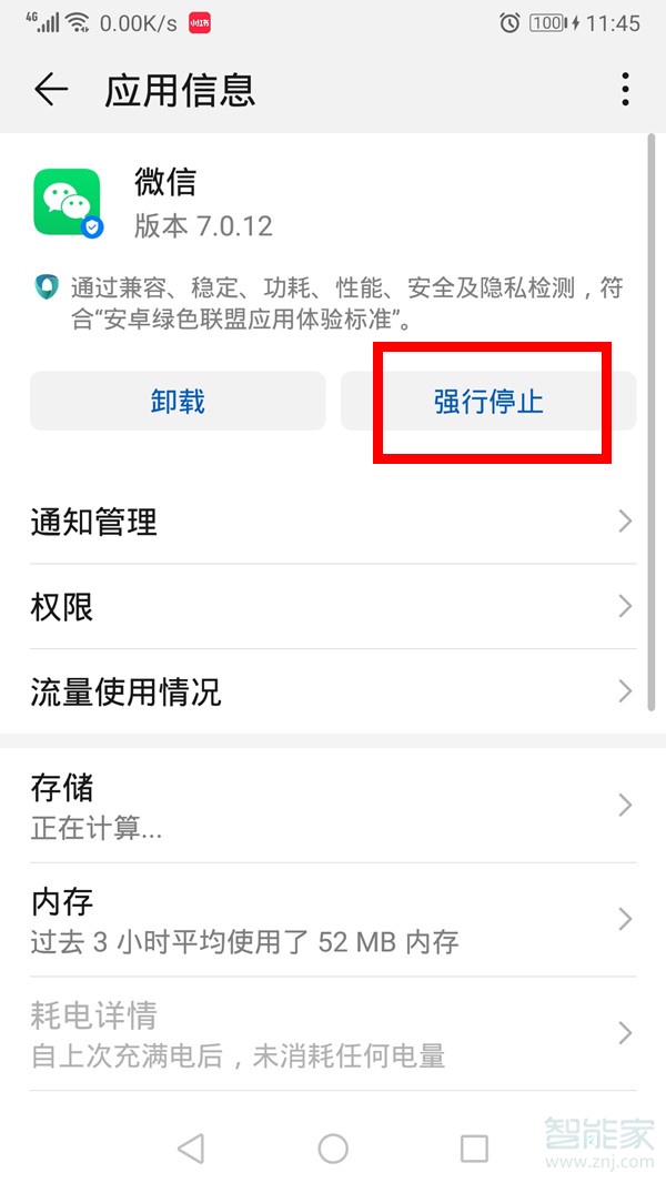 3、重启手机或者在手机设置>应用>应用管理>微信>强行停止,尝试恢复。