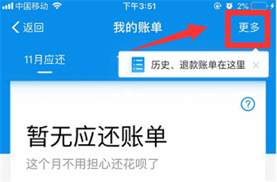 3、点击右上角更多,点击全部退款,在退款记录中可以看到退回途径:已退回额度、已退回*月账单、已抵扣*月未出账单。