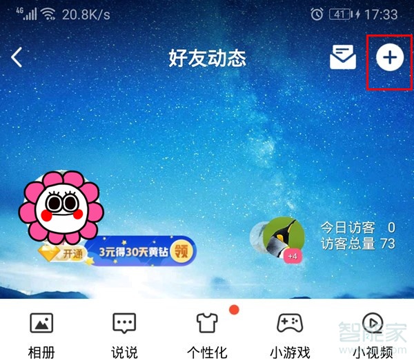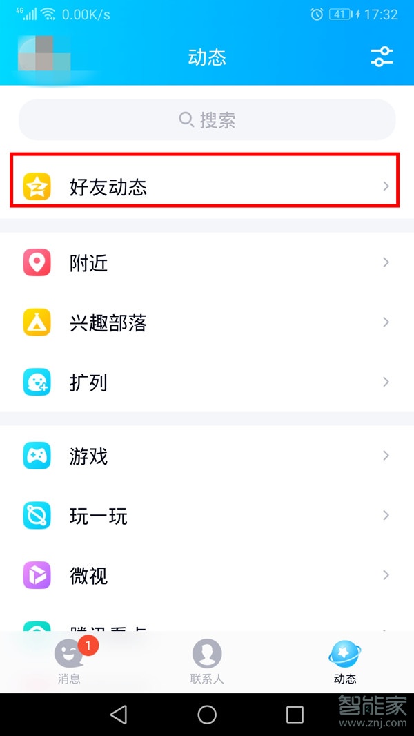 1、进入QQ页面中,在动态界面点击态“好友动态”。