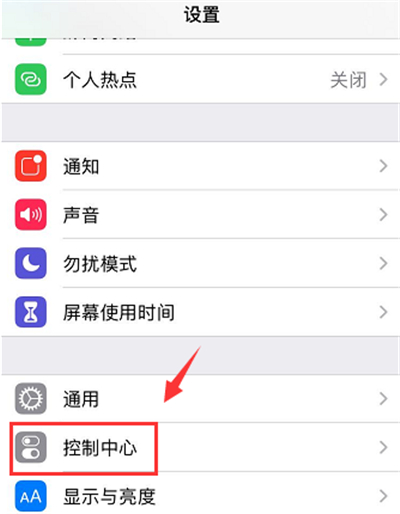 4.再锁定屏幕,划开控制中心页面就没有相机和手电筒了