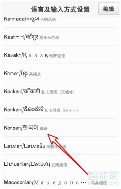 4.再次打开语言及输入方式设置选择页面选中韩语。