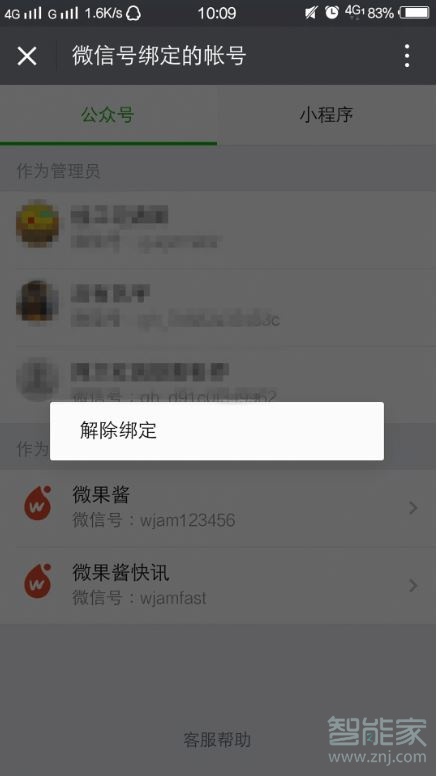 3、点击作为运营者下面的公众号,会出现解除绑定选项,点击即可解除绑定。