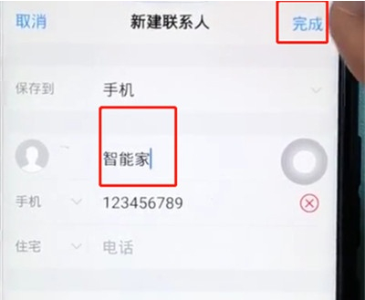 2、输入姓名,点击右上角的完成即可成功添加联系人。