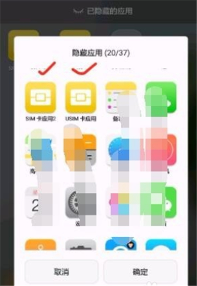 3、如果需要恢复被隐藏的应用,请勾选要恢复的软件,单击“确定”按钮这个时候回到手机桌面上面,发现隐藏的软件就会被恢复了。