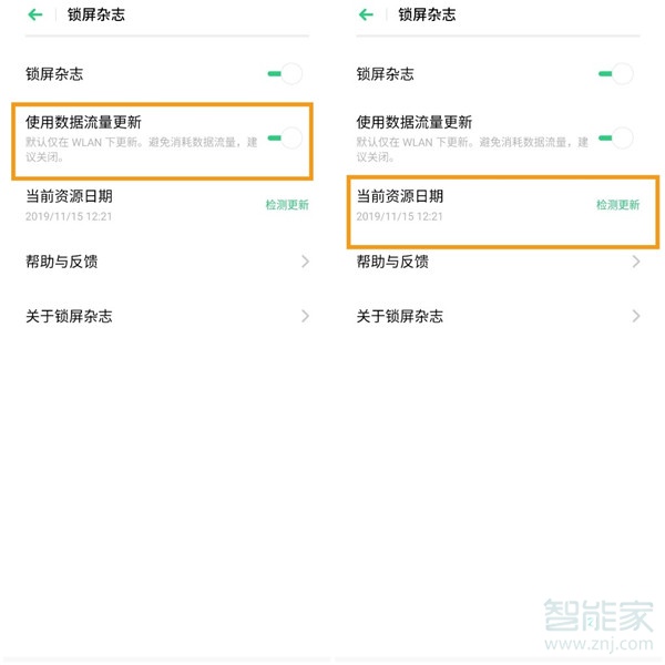 锁屏杂志默认是在WLAN网络下进行更新的,当然也可以选择将【使用数据流量更新】打开,或者选择手动【检测更新】。