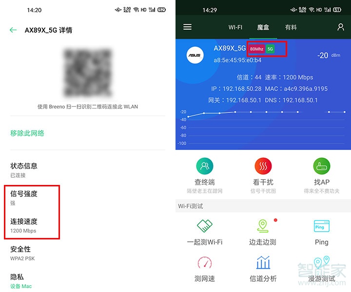 在信号好的时候,wifi6和wifi5的网速速率表现很难拉开差距,毕竟都是单点测试,而且终端数量少。