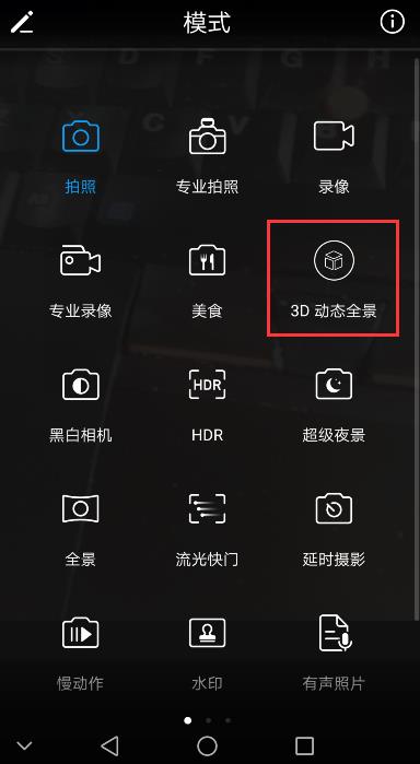 2、向右滑动屏幕,点击【3D动态全景】。