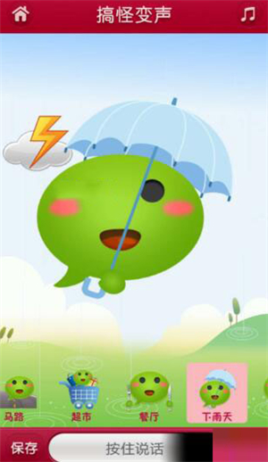 2. 按住“按住说话”,对准话筒,说你想要变声的话。