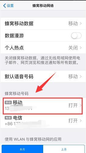 3、在“蜂窝移动号码”选项下选择一张卡。