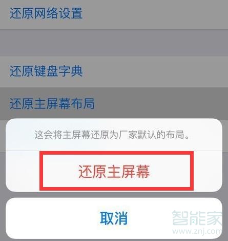 5、最后在弹出的界面点击【还原主屏幕】即可。
