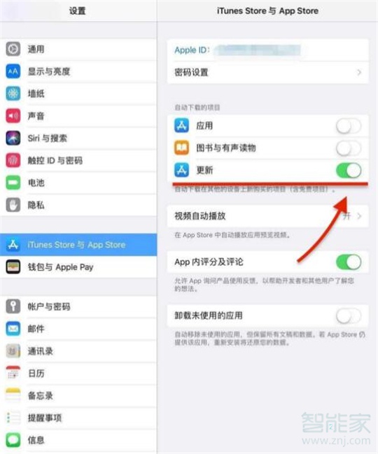 2、关闭APP自动更新:前往“设置”>“[您的姓名]”>“iTunes Store 与 App Store”。然后关闭“App 更新”。