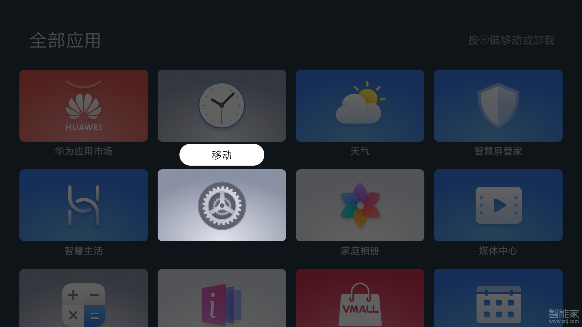 4、按遥控器上下左右键拖动该应用,将其放置目标位置。