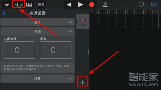 点击左上角三角形图标旁边的正方形加两个圆形图标,或者点击+号即可退出音轨操作界面。