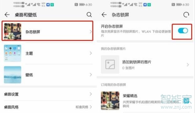 首先关闭杂志锁屏,【设置】-【桌面于壁纸】-【杂志锁屏】-选择关闭【杂志锁屏】。