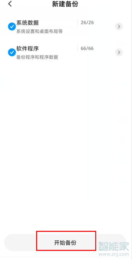 6、进入之后点击下面【开始备份】即可。