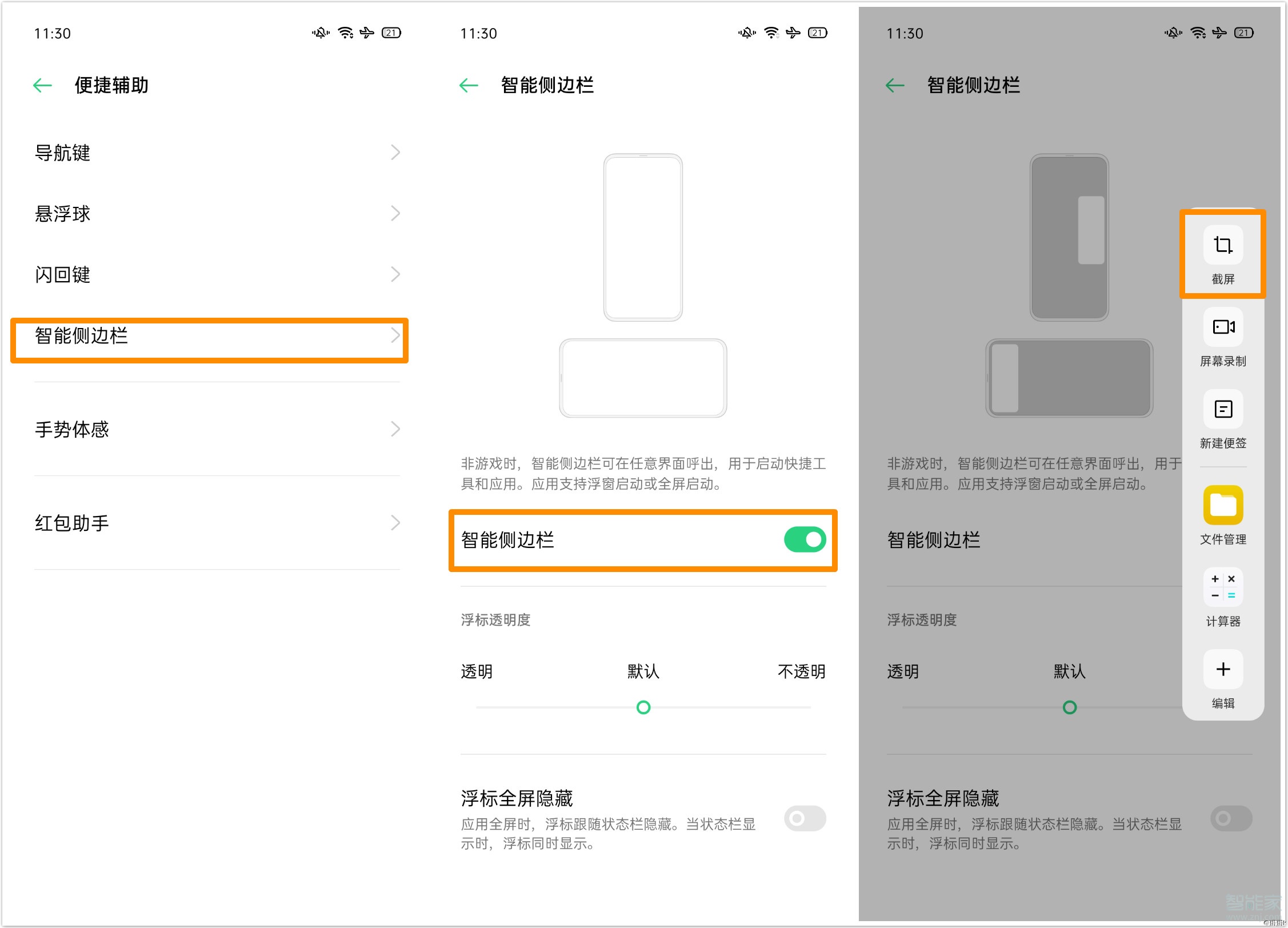 操作方法:设置-便捷辅助-悬浮球-截屏