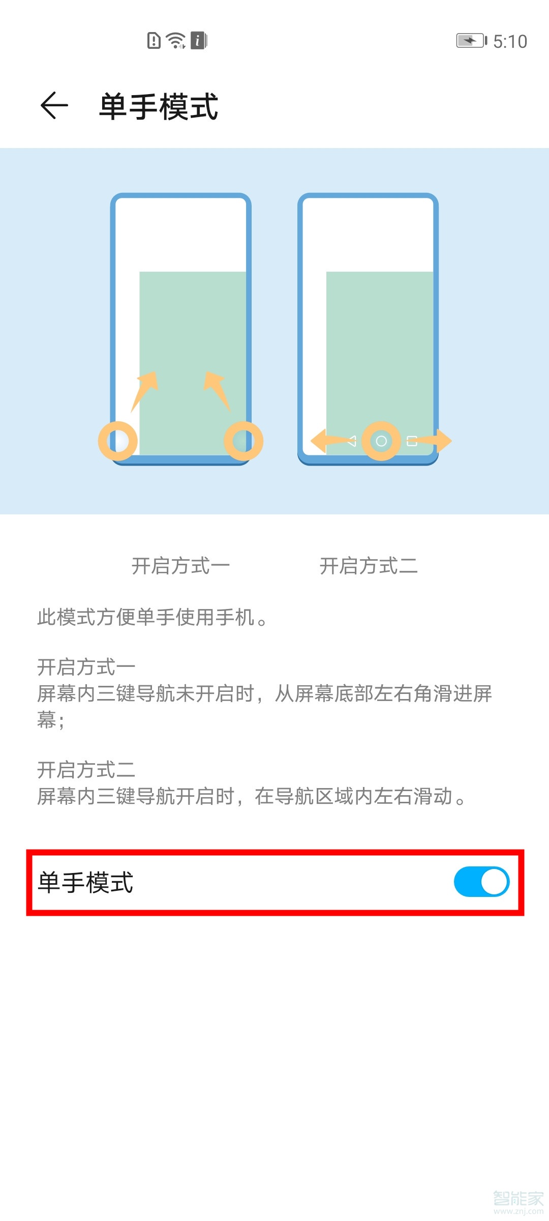 打开单手麽时候,如果屏幕内开启了三键导航手势,只需从屏幕底部左右角华景屏幕即可用单手使用手机,如果开启了三键导航,只需在导航区域内左右滑动即可。