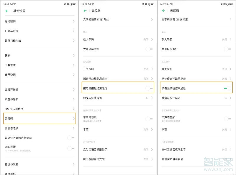 2、 点击进入【无障碍】选项,打开【按电源按钮结束通话】。