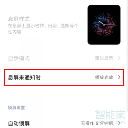 3、进入息屏和锁屏后点击【息屏来通知时】。