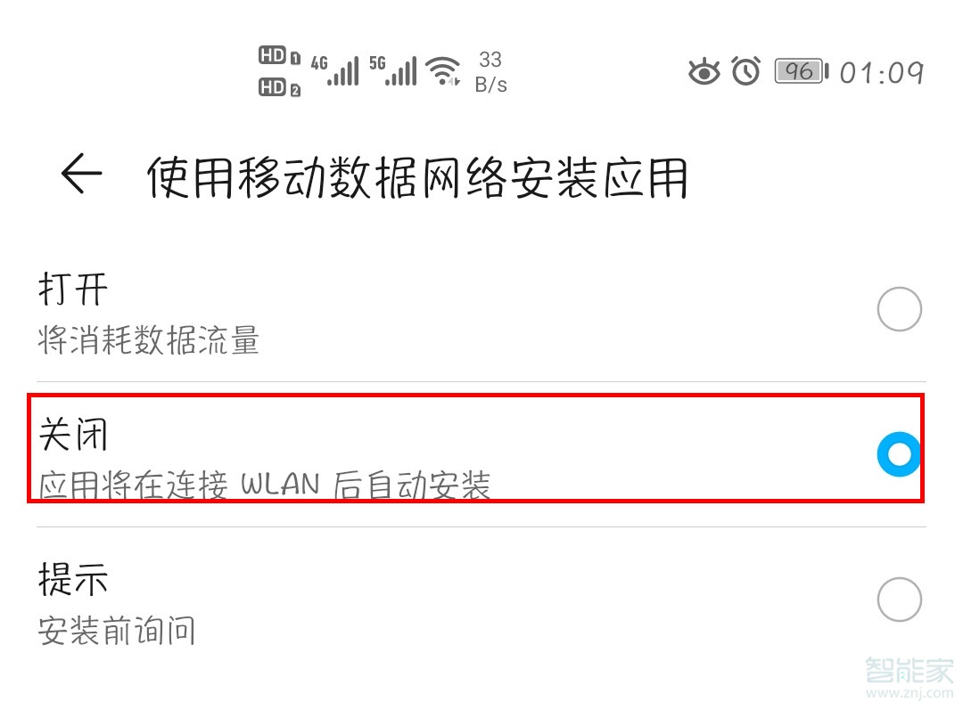 3、点击进入【设置】, 将【使用移动数据网络安装应用】关闭即可。