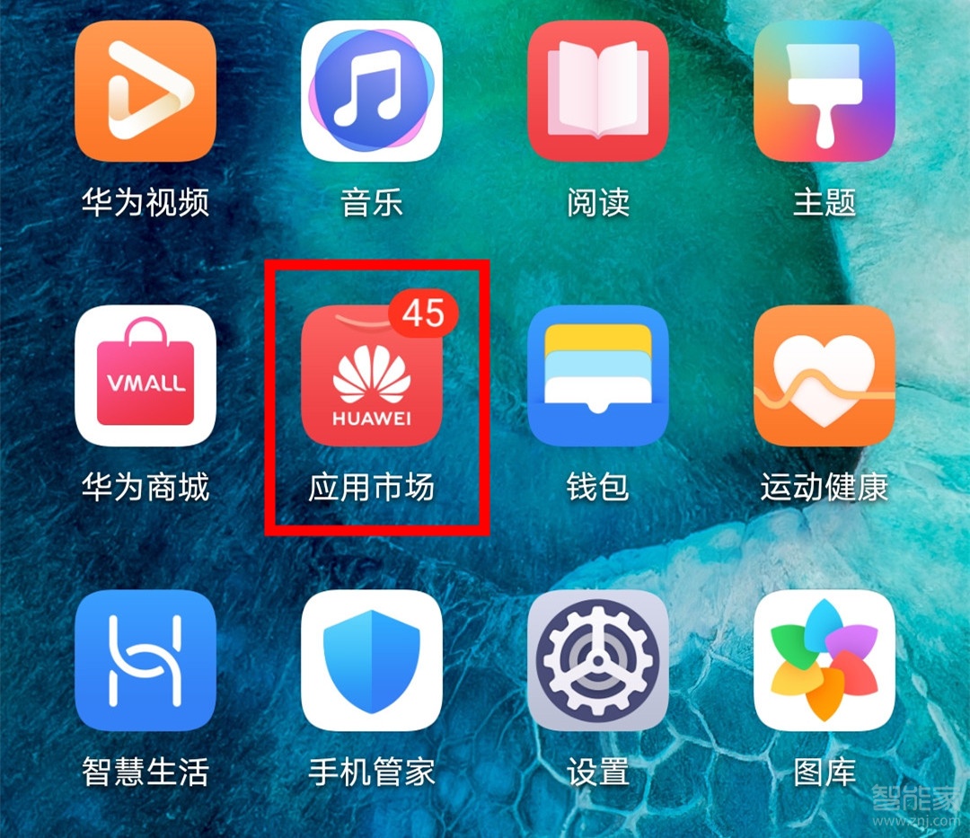 1、打开手机桌面上的【应用市场】