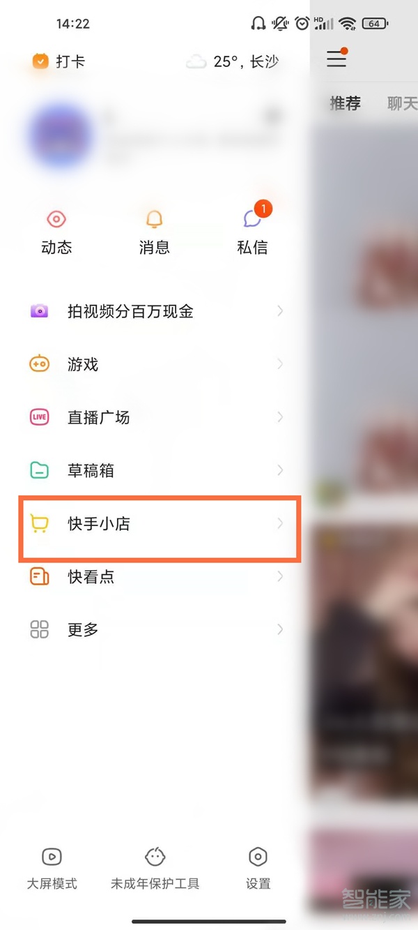 1、打开快手app,点击左上角的三横线,再点击快手小店。