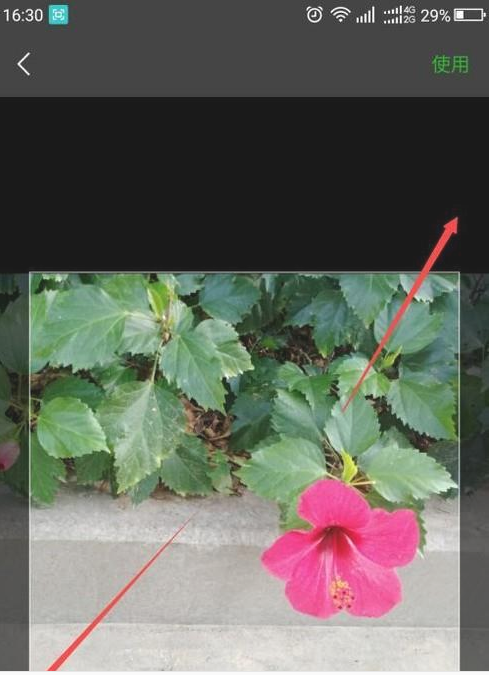 5、这样图片尺寸就变大了,如果想变小就反方向双指向里部滑,最后点击右上角使用即可