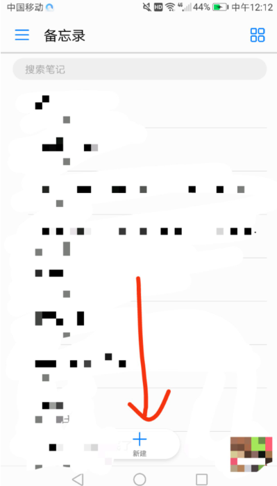 2、在备忘录的下方找到”新建“选项,点击打开。