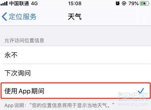 8、选择【使用App期间】即可。