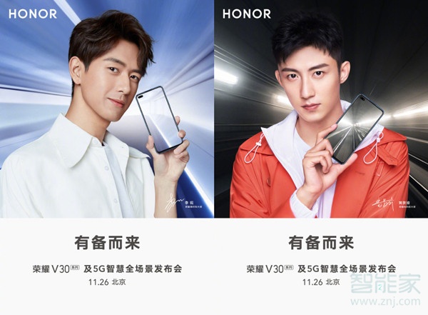荣耀官方已确定,荣耀v30即将在11月26日发布,从海报来看,荣耀v30将采用正面双打孔设计,锐科技大使黄景瑜和潮科技大使李现代言。