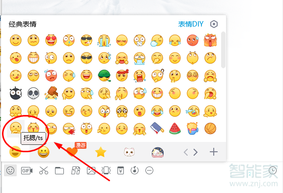 我们可以看到这个拖着腮的表情就是托腮的意思,也根据当时的聊天内容理解,可能有:思考、静静的看你表演等。你把鼠标放在你表情哪里,就会出现各个图标代表的意思说明,一般没有隐含意思。