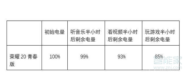 有媒体用荣耀20青春版依次听半个小时音乐、看半个小时视频、玩半个小时游戏的测试方式,记录下荣耀20青春版的电量变化,结果如下图:
