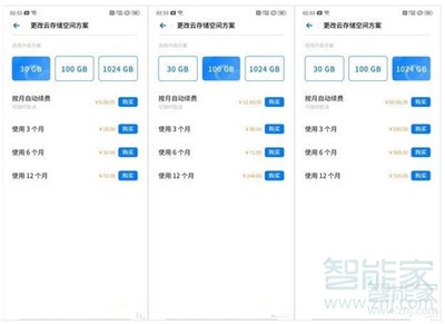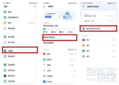 设置方法:设置—云服务—管理云存储空间—更改云存储空间方案