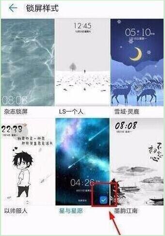5、进入锁屏样式界面,点击勾选一个喜欢的样式即可设置。