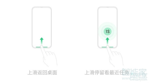 1、两侧返回:顾名思义从屏幕底部两侧向上滑动可以返回上一级;从屏幕底部中间向上滑动直接返回桌面;从屏幕底部中间上滑并停留可以查看管理多任务。